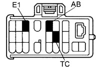 Коды самодиагностики считываются аналогично прочим, по числу вспышек индикатора "SRS" при замкнутых выводах "TC"-"E1" разъема DLC1 под капотом или "TC"-"CG" разъема DLC3 под приборной панелью и включенном зажигании.