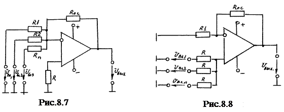 В схеме сумматоров переменным параметром является сопротивление обратной связи R о.с, которое и определяет коэффициент усиления. Формулы