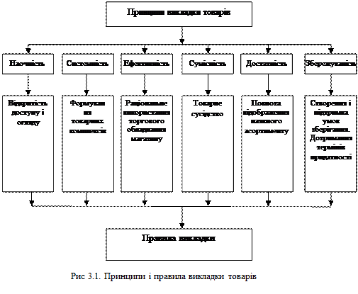 Базовий принцип розміщення (викладки) - пошук потрібного товару для покупця має бути в максимальній мірі полегшений.
