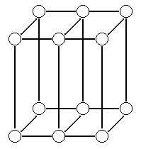 Пример. “Вложение друг в друга” плоскостных матричных структур может привести к более сложной структуре - структуре пространственной матричной (например, вещества кристаллической структуры типа изображённой на рис.). Структура сплава и окружающей среды (макроструктура) могут определять свойства и структуру сплава (микроструктуру):