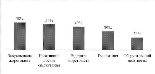 Результати аналізу рівня деструктивних установок у міжособистісних стосунках за окремими факторами представлено на рис. 2.1.
