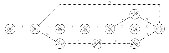 Линейная диаграмма – графическое отображение информации, связанной с расписанием работ. При построении линейной диаграммы проекта каждая работа изображается отрезком, параллельным оси времени. Длина его равна продолжительности работы. При наличии фиктивной работы нулевой продолжительности она изображается точкой. События По графику движения рабочей силы можно оценить эффективность использования рабочей силы. Рассмотрим построение линейной диаграммы (рис. 5) на примере заданного сетевого графика (рис. 4).