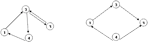 Система (1) визначає перехідний процес у припущенні, що початковий стан –P0. Якщо число станів системи n - кінцеве і з кожного стану графа можливо перейти в будь-який інший стан, то така система буде мати граничний стаціонарний режим. Так, система (рис.1а) має стаціонарний режим, а система (рис. 1б) – не має.