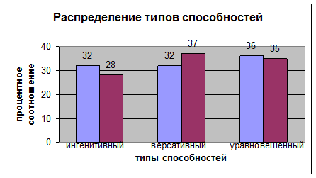 Рис.3 Соотношение распределения типов способностей в общей выборке Date: 2015-05-22; view: 517; Нарушение авторских прав |