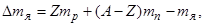 где тр – масса протона; тп – масса нейтрона; тя – масса ядра; А – массовое число; Z – зарядовое число. 45. Энергия связи ядра: