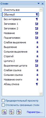 Рис. 1.3. Область Стили. Например, щелкните на кнопке WordArt, расположенной на вкладке Вставка в группе Текст. В появившейся коллекции выберите нужный вариант, например первый по порядку. В открывшемся диалоговом окне введите текст и щелкните на кнопке ОК. На странице появится текст WordArt, а на ленте вы увидите дополнительную вкладку Формат, на которой находятся инструменты для работы с объектами WordArt (Рис.1.4).