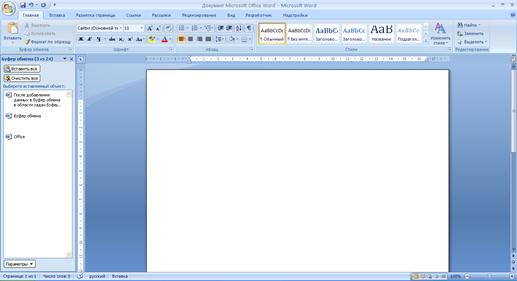 Давайте рассмотрим окно документа Word 2007, показанное на Рис.1.1 В верхней части окна вы видите ленту, в которой расположены вкладки с кнопками для выполнения команд, а также кнопка Office и панель быстрого доступа. Команды на вкладках сформированы в группы.