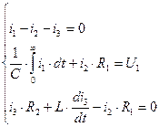 Составим систему дифференциальных уравнений на основании законов Кирхгофа, описывающую процесс в цепи после коммутации (t>0):