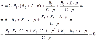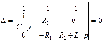 Уравнение (2.9) является характеристическим уравнением цепи. Характеристическое уравнение цепи можно составить другим способом. Запишем определитель исходной системы уравнений и приравниваем его к нулю: