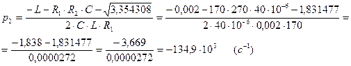 Подставив числовые значения параметров цепи в характеристическое уравнение (2.13), вычислим его корни:
