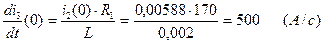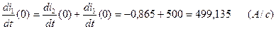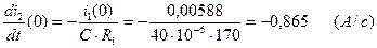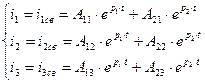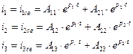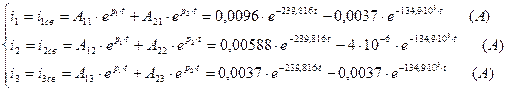 Корни характеристического уравнения – вещественные числа, характер переходного процесса апериодический, свободные составляющие тока запишем в виде: