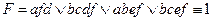Не находя существенных импликант, обозначим все простые импликанты латинскими буквами. Исходная функция может быть записана в виде дизъюнкции простых импликант, что соответствует сокращенной форме (которая является единственной). Эта форма является также тупиковой. Для отыскания всего множества тупиковых форм запишем тождественную логическую формулу: