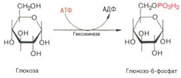 3. Напишите реакцию образования глюкозо–6–фосфата из глюкозы.