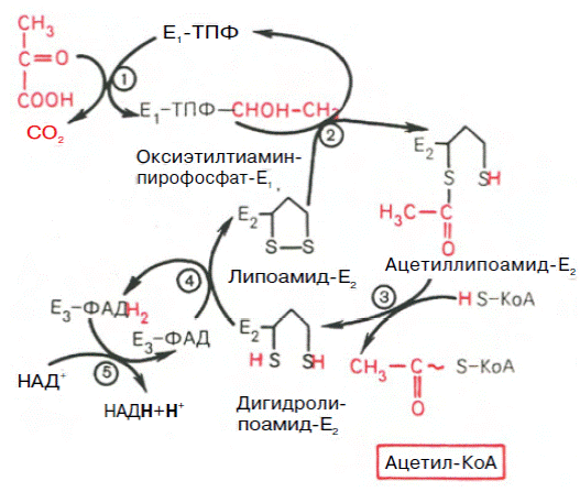 4. Напишите реакцию образования ацетиллипоамида-Е2 из оксиэтилтиаминпирофосфата-Е1.