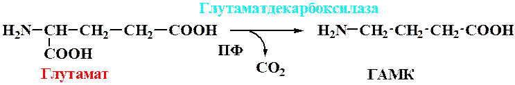 Ацетилхолин – один из важнейших возбуждающих нейромедиаторов вегетативной нервной системы. Синтез g-аминомасляной кислоты (ГАМК): ГАМК образуется в нервных клетках в ходе декарбоксилирования глутамата: