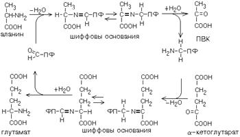 Метаболические пути, в которые вступают аминокслоты после дезаминирования, уже не являются собственно путями метаболизма аминокислот, а являются универсальными и для аминокислот, и для углеводов, и для жиров. ТРАНСАМИНИРОВАНИЕ Эта реакция заключается в том, что аминокислота и кетокислота обмениваются друг с другом своими функциональными группами при альфа-углеродном атоме. В результате вступившая в реакцию аминокислота превращается в соответствующую альфа-кетокислоту, а кетокислота становится аминокислотой. Эту реакцию катализируют ферменты под названием ТРАНСАМИНАЗЫ (АМИНОТРАНСФЕРАЗЫ). Коферментом всех трансаминаз является активная форма витамина В6 - пиридоксальфосфат (фосфопиридоксаль). ГЛАВНЫЕ ОСОБЕННОСТИ РЕАКЦИИ ТРАНСАМИНИРОВАНИЯ: 1. Это циклический процесс, все стадии которого катализируются одним и тем же ферментом - трансаминазой данной пары кислот. В этот цикл вступает одна аминокислота и кетокислота. Образуются другая альфа-кетокислота и аминокислота. 2. Все стадии этого процесса обратимы. Поэтому весь цикл в целом может протекать как в прямом, так и в обратном направлении. Направление этого цикла зависит от соотношения концентраций участников реакции - всех четырех кислот. Резко повысив концентрацию какой-либо одной из кислот, можно направить реакцию по определенному направлению. 3. Каждая трансаминаза обычно специфична для одной пары субстратов и соответствующей ей пары продуктов и все стадии реакции катализируются только одним ферментом. По участникам процесса для данного фермента дают ему название: Фермент, который катализирует приведенную реакцию, можно назвать: Аланинаминотрансфераза (АлТ) (глутаминово-пировиноградная трансаминаза (ГПТ)). 4. Трансаминазы обычно обладают высокой субстратной специфичностью и высокой активностью. Наиболее активными в клетках являются те трансаминазы, для которых хотя бы один из субстратов является дикарбоновой альфа-кетокислотой - это АлТ - аланинаминотрансфераза (ГПТ) и АсТ - аспартатаминотрансфераза (ГЩТ). Определение активности этих ферментов в сыворотке крови имеет важное значение в ДИФФЕРЕНЦИАЛЬНОЙ ДИАГНОСТИКЕ таких заболеваний, как ВИРУСНЫЙ ГЕПАТИТ и ИНФАРКТ МИОКАРДА. АсТ и АлТ являются внутриклеточными ферментами. Поэтому в норме их активность в крови очень мала. При вирусном гепатите или при инфаркте миокарда наблюдается разрушение клеток печени или миокарда соответственно. Поэтому в крови будет наблюдаться повышение активности и АлТ, и АсТ, но неодинаковое для каждого из ферментов. В клетках сердечной мышцы (миокарда) содержится гораздо больше АсТ, чем АлТ, а в клетках печени - наоборот: АлТ намного больше, чем АсТ. Поэтому ПРИ ИНФАРКТЕ МИОКАРДА АКТИВНОСТЬ АСТ в крови БУДЕТ ЗНАЧИТЕЛЬНО ВЫШЕ, ЧЕМ АЛТ, А ПРИ ВИРУСНОМ ГЕПАТИТЕ АКТИВНОСТЬ АЛТ БУДЕТ ВЫШЕ, ЧЕМ АСТ. Поэтому определение активности этих ферментов в крови помогает врачам в постановке правильного диагноза. БИОЛОГИЧЕСКАЯ РОЛЬ РЕАКЦИЙ ТРАНСАМИНИРОВАНИЯ. 1. ОБЕСПЕЧИВАЮТ СИНТЕЗ НОВЫХ АМИНОКИСЛОТ ИЗ ЧИСЛА ЗАМЕНИМЫХ. Из заменимых аминокислот также могут образоваться необходимые клетке кетокислоты. Эта функция позволяет ругулировать содержание различных аминокислот в клетках организма (корректировка аминокислотного состава клеток). При избытке какой-либо из кислот соотношение быстро восстан