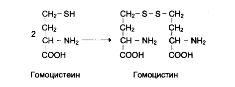 При нарушении использования гомоцистеина в организме из него образуется гомоцистин: