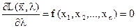 Функция L называется нормальной функцией Лагранжа, а коэффициент λ – неопределённым множителем Лагранжа (λ пока неизвестная величина). Если в точке Поэтому для решения задачи оптимизации определяем точку, в которой частные произведения равны нулю: