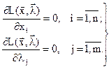 Из (m+n) уравнений (2.28) определяем n переменных Если условия (2.26) таковы, что не выполняется условие регулярности (2.12), то правило множителей с нормальной функцией Лагранжа в этом случае не справедливо. Для перехода к задаче на безусловный экстремум составляют функцию Лагранжа вида