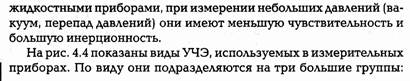 Для оценки рационального использования приборов важно знать их характеристики и качественные показатели: - погрешность (класс точности), - вариацию, - чувствительность, - инерционность, - надежность. Любое измерение неизбежно сопровождается некоторыми ошибками. Ошибки, возникающие при измерениях, называются погрешностью. Они обусловлены несовершенством методов и средств измерения. Различают абсолютную, относительную и относительную приведенную погрешности. Абсолютной погрешностью измерительного прибора называется разность между показанием этого прибора и действительным значением, найденным по образцовым прибора. Относительная погрешность – это отношение абсолютной погрешности к действительному значению измеряемой величины. Относительной приведенной погрешностью называется отношение абсолютной погрешности к разности верхнего и нижнего пределов шкалы прибора, выраженное в %.. В зависимости от характера погрешности делятся на систематические, промахи и случайные. Систематическими называются такие погрешности, которые изменяются по определенному закону. Появление систематических погрешностей вызывают свойство и состояние применяемого прибора, способы его установки, условия работы измерительного устройства, метод измерения, индивидуальные особенности наблюдателя. Систематические погрешности выражаются в виде разности результатов измерения рабочим и образцовым прибором. Эти разности, взятые с обратным знаком, составляют таблицу поправок к показаниям прибора. Промахами называются погрешности, резко искажающие результат измерения. Они возникают при неправильном отсчете по шкале, неправильном включении прибора, неправильной записи показаний. Промахи устраняются при сопоставлении ряда измерений. Случайными называются погрешности, которые не подчиняются известной закономерности. Они возникают в результате влияния на процесс измерения случайных причин. Влияние этих погрешностей на результат измерения можно оценить путем многократного измерения искомой величины. Погрешность, соответствующая нормальным условиям работы прибора, называется основной. За нормальные условия принимают температуру 293 К (20 °С), давление 101325 Па, относительную влажность до 80 %, отсутствие вибрации, электрических и магнитных полей. При нарушении нормальных условий возникает дополнительная погрешность прибора. Обобщенной характеристикой прибора является класс точности, определяемый предельными значениями допускаемых основных и дополнительных погрешностей. Раньше под классом точности приборов понималось отношение абсолютной погрешности к диапазону шкалы, выраженное в процентах. Например, манометр класса 2,5 с предельными значениями шкалы 100 кгс/см2 (10 МПа), имеет дополнительную погрешность 2,5 кгс/см2 (0,25 МПа). Наиболее распространенные технические приборы имеют классы точности 0,2; 0,5; 1; 1,5; 2,5. Этими цифрами обозначают класс точности на шкалах. В настоящее время класс точности устанавливается по абсолютной погрешности (порядковые номера классов). Наряду с классом точности существуют и другие качественные характеристики приборов: вариация, чувствительность, инерционность и надежность. Вариацией показаний прибора называется наибольшая разность между повторными показаниями прибора и действительным значением измеряемой в