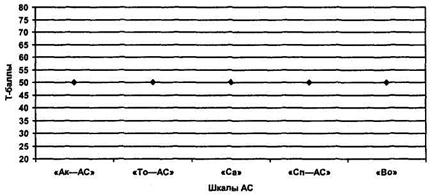 Рис. 2.4. Профиль средних величин шкальных оценок АС группы студентов накануне экзамена Перевод сырых шкальных оценок в стандартные целесообразно осуществлять, используя формулу (для всех шкал, кроме «Ак»):