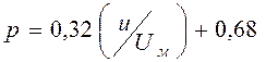 где p - безразмерный коэффициент, который определяется в зависимости от соотношения u/Uм по формулам: