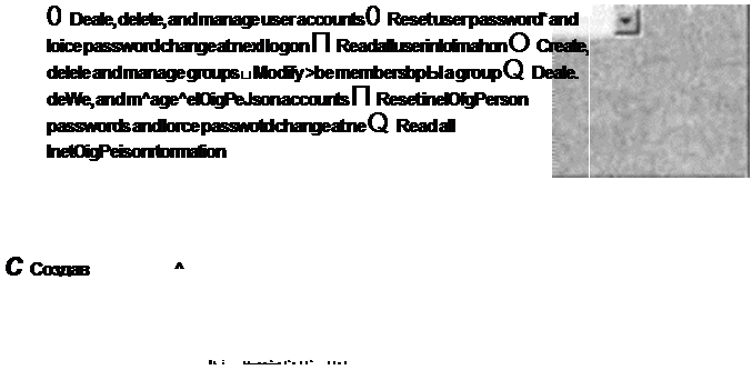 Необходимо учитывать, что компьютеры, которые не перезагружались в течение этого периода, также будут иметь "старые" значения времени входа в систему. Для того чтобы осуществить на практике такую передачу прав, которую принято называть делегированием, администратору достаточно изменить разрешения безопасности на соответствующий контейнер. Так, если необходимо делегировать кому-либо право создания пользователей, то этому сотруднику следует дать право на создание объекта типа "пользователь" в заданном подразделении. При этом перечень возможных прав доступа для контейнера является настолько подробным, что администратор без труда может настроить объем делегирования (например, дать право добавления в домен компьютеров, но лишить возможности изменения или удаления таких объектов). 1 Делегирование прав создания учетных записей позволит более тесно "связать" кадровые записи и записи служб каталогов. Учетная запись в этом случае может иметь только минимальные начальные права для входа в систему. Предоставление дальнейших прав по доступу к ресурсам (изменение членства в группах) могут осуществлять менеджеры соответствующих групп. j Большинство утилит графического управления объектами службы каталогов Мастер делегировании упр&олен