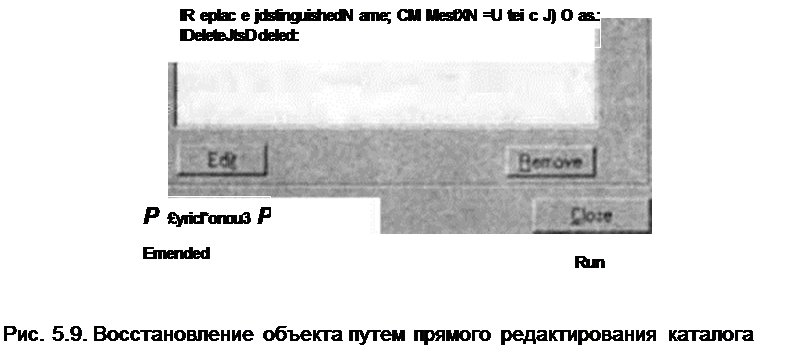 Восстановление удаленных объектов имеет некоторые особенности. Чтоб! восстановить объект, нужно выполнить следующие действия: □ удалить атрибут isDeleted для данного объекта; □ заменить значение атрибута distinguishedName на то, куда будет восс новлен объект (обычно выбирается прежнее расположение, которое можно уточнить по значению параметра lastKnownParent); П установить обязательные атрибуты (если таковые требуются для данного типа объекта). Все эти действия должны быть выполнены за одну операцию. Если описать кратко операцию восстановления по шагам, то следует: 1. Подключиться к контроллеру домена, ввести свои учетные данные. 2. Добавить контроль Return Deleted Objects (или 1.2.840.113556.1.4.417 I для Windows 2000) в меню Options | Control. 3. Найти тот объект, который предполагается восстановить (так, как описано I выше), и запомнить его DN. 4. Выполнить команду Browse | Modify и указать в качестве DN соответст-т вуюшее значение восстанавливаемого объекта. 5. В строке Attribute указать distinguishedName, в строке Value ввести но-I вое значение (то, которое должно быть у восстановленного объекта), вы-I брать операцию Replace и нажать кнопку Enter. 6. Указать в качестве Attribute значение isDeleted, очистить строку Value, 7. После этого следует добавить обязательные атрибуты, если они необхо-I димы для восстанавливаемого объекта. 8. Отметить флажки Synchronous и Extended. 9. Нажать на кнопку Run (рис. 5.9).