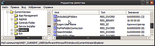 І. Як працювати у редакторі реєстру: 1. 2. Навігація в редакторі. Редактор реєстру складається з двох вікон. У лівому вікні відображається структура розділів реєстру (провідник), в правому – параметри (ключі) реєстру, що містяться у розділі, який переглядається. Якщо у лівому вікні редактору виділити певний розділ (клацнути по ньому мишкою), в правому вікні відображатиметься список параметрів, які у ньому містяться. Щоб стало зрозуміло, давайте повернемось до нашого прикладу: відкриємо редактор реєстру і спробуємо знайти двоїчний параметр з назвою «link» у розділі HKEY_CURRENT_USER\Software\Microsoft\Windows\CurrentVersion\Explorer. Для цього в лівій частині редактору подвійним кліком мишки спочатку відкриваємо розділ HKEY_CURRENT_USER. Під ним з'явиться список підрозділів, які у ньому містяться. Серед них знаходимо і відкриваємо розділ Software, у ньому – розділ Microsoft і т.д. Коли доберемося до розділу Explorer і виділимо його (кліком миші), в правому вікні редактору з'явиться список параметрів, серед яких буде і параметр з назвою «link». 3. Щоб змінити значення параметру, треба двічі клацнути по ньому лівою кнопкою миші. Відкриється віконце зміни параметру. У ньому в поле «значення» треба внести необхідні корективи та натиснути кнопку «ОК». 4. Створення нового параметру. Спочатку у лівому вікні редактора (провіднику) проходимо до розділу, в котрому потрібно створити параметр, і виділяємо його. Потім в правому вікні клікаємо правою кнопкою миші по пустому місцю (а не по параметрах, які там є) і в меню «создать», яке з'явиться, вибираємо відповідний вид параметру, який необхідно створити. В списку з'явиться новий параметр. Клацаємо по ньому правою кнопкою миші, обираємо "Переименовать", даємо йому потрібну назву. Потім вказаним у попередньому пункті способом задаємо йому необхідне значення. 5. Щоб видалити параметр, треба клацнути по ньому правою кнопкою миші та вибрати «удалить». Date: 2015-05-23; view: 397; Нарушение авторских прав |