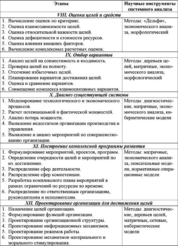 Приведенное описание методик носит абстрактный характер. В табл. 5.2. приведены этапы системного анализа и их последовательность по методике системного анализа Ю.И.Черняка.