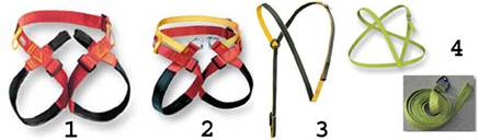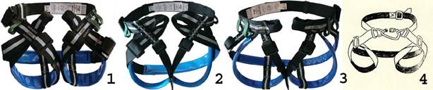 Рис.36 Беседки и чересплечные ремни фирмы "Petzl" 1 - Superavanti, 2 - Fractio, 3 - Torse, 4 - Serpentine