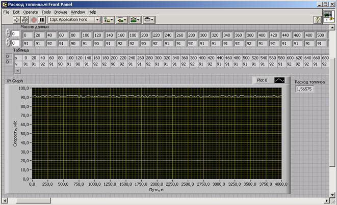 Рис. 3.6. Имитационная модель испытательного стенда для определения топливно-скоростной характеристики при движении на магистрально-холмистой дороге В результате трехкратного определения расхода топлива получено: