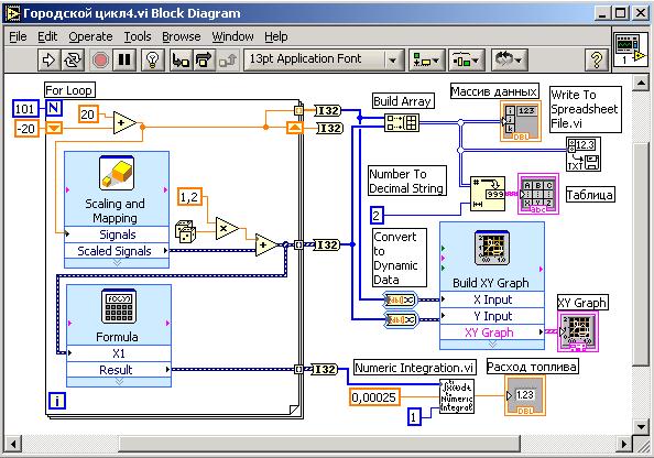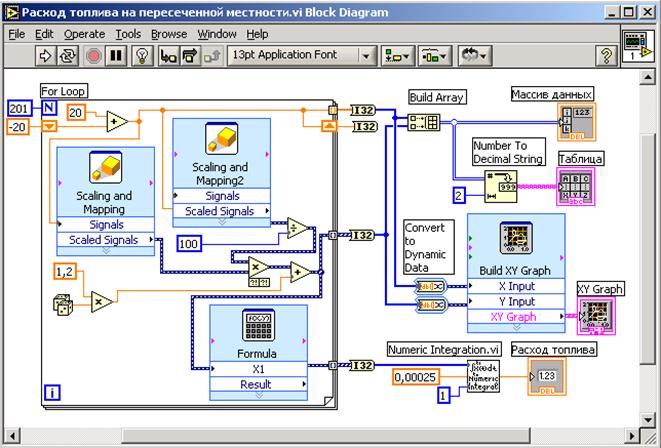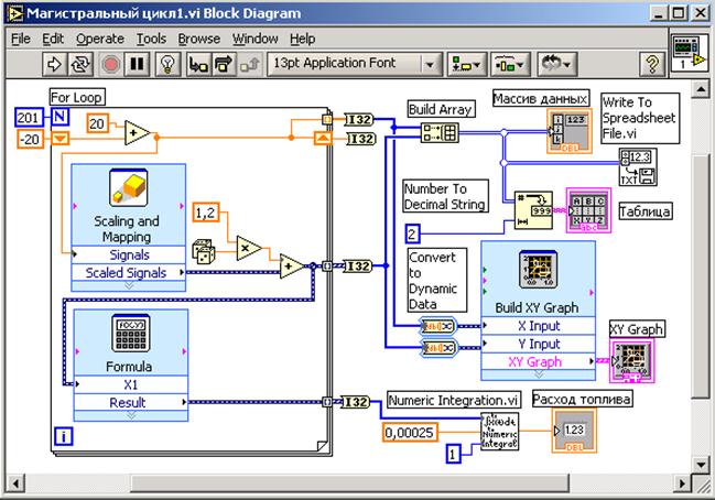 Базовый стандарт: ГОСТ 20306-90. Автотранспортные средства. Топливная экономичность. Методы испытаний. Цель работы: 1. Получение навыков имитационного моделирования в среде графического программирования LabVIEW. 2. Освоение методов испытаний автотранспортных средств. 3. Получение навыков использования нормативных документов для разработки программ и методик сертификационных испытаний. Задание 1. Для всех типов АТС определить топливно-скоростную характеристику при установившемся движении и на магистрально-холмистой дороге. 2. Выполнить программы ездовых циклов для конкретных типов АТС. 3. Разработать программу определения топливной эффективности в соответствии с заданными АТС и видом испытаний. 4. Разработать методику определения топливной эффективности в соответствии с заданными АТС и видом испытаний. 5. Оформить протокол испытания. Описание: Базовый стандарт распространяется на автотранспортные средства (АТС) всех типов, за исключением внедорожных. В ходе испытания устанавливают показатели и характеристики топливной экономичности АТС: Применяемость показателей и характеристик по видам испытаний и типам АТС определяется соответствующими программами испытаний. АТС испытывают в естественных условиях и на испытательных стендах. В естественных условиях стандартом установлены требования к автомобильным дорогам, режимам и порядку выполнения ездовых циклов и измерительному оборудованию, установленному на АТС. При выполнении программ испытаний на стендовом оборудовании дополнительные требования предъявляют к стендовому оборудованию и системам управления этим оборудованием. Стендовое оборудование зачастую обладает большей возможностью типизации процедур испытания, но меньшей метрологической точностью, так как оно имееет дополнительные погрешности задания режимов и погрешности, связанные с влиянием сложной технической системы (стенда) на испытываемые АТС на статических и динамических режимах. Выполнение работы Определение топливно-скоростной характеристики при установившемся движении и на магистрально-холмистой дороге (выполнить для всех вариантов) Собрать имитационную модель испытательного стенда (рис. 3.1 – 3.2).