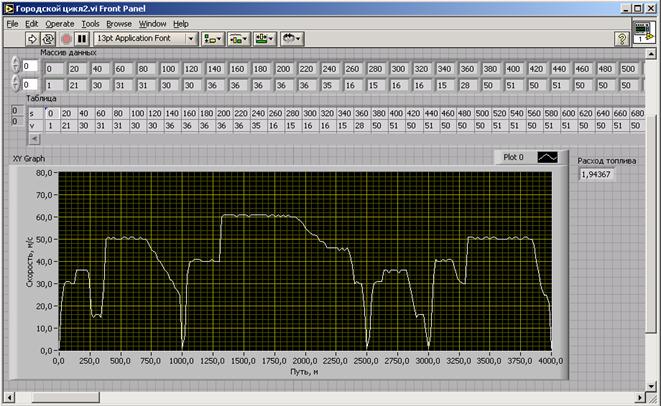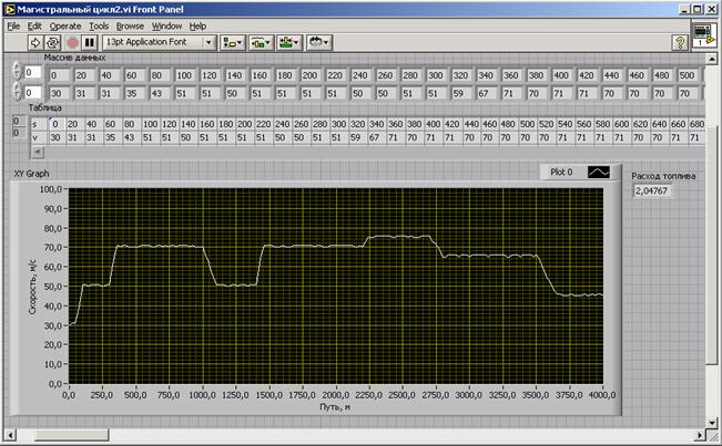 Рис. 3.13. Модель топливно-скоростной характеристики для магистрального цикла Результат моделирования циклограммы представлен на рис. 3.14.