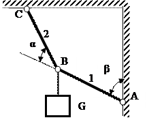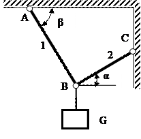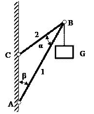 Знайти зусилля в стержнях шарнірно-стержневої конструкції, що знаходиться в рівновазі під дією сили G. Вихідні дані до всіх задач приведені в таблиці 2. Таблиця 2