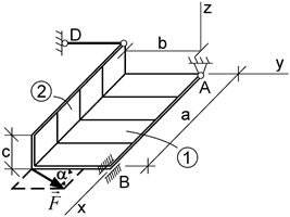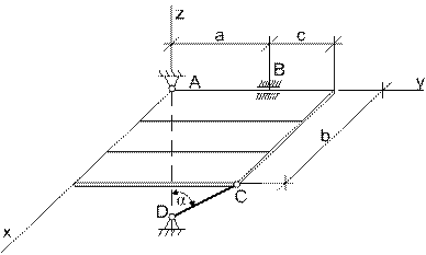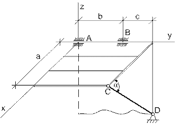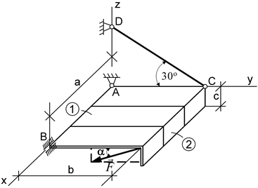 Для розв’язання задач даної теми необхідно вивчити наступні розділи і питання: · В'язі і їхні реакції (сферичний і циліндричний шарніри, упорний підшипник та інші); · Центр паралельних сил і його радіус-вектор; · Центр ваги. Центри ваги однорідних тіл; · Центри ваги однорідних симетричних тіл; · Основні способи визначення центра ваги тіла; · Аналітичні умови рівноваги довільної системи сил. ЗАДАЧІ У задачах 0-2 розглядається рівновага складеної конструкції, що складається з двох прямокутних однорідних плит вагою Р1 і Р2, у задачах 3-9 - рівновага прямокутної однорідної плити вагою Р1. Знайти реакції накладених на конструкцію в'язів. Таблиця 6.