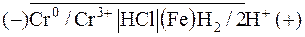 Большее значение имеет стандартный электродный потенциал железа. Следовательно, катодом будет железо, а анодом, т.е. электродом на котором происходит процесс окисления, хром. А: Cr – 3 ē → Cr3+ Теперь необходимо выяснить какие частицы восстанавливаются на катоде. В зависимости от среды это либо ионы водорода (кислая среда), либо кислород (нейтральная среда). Источником этих веществ является атмосфера. K: 2H+ + 2 ē → H2 (кислая среда), K: O2 +2H2O + 4 ē → 4OH- (нейтральная среда), Таким образом, в кислой среде возникнет следующий коррозионный гальванический элемент, в котором будет окисляться хром (анод), а восстанавливаться ионы водорода (катод):