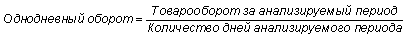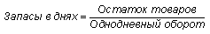 Анализируя товарные запасы торговой организации, необходимо определить отклонение фактических запасов от установленных нормативов и начальных остатков в сумме и в днях оборота. Для этого сопоставляются фактические и плановые данные в целом и по товарным группам. На величину товарных запасов оказывают влияние объем и структура товарооборота, а также товарооборачиваемость. Последний показатель измеряется в днях и рассчитывается по следующей формуле: