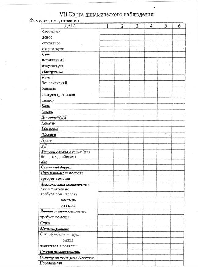 VII карта сестринского процесса