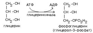 АТФ необходим для синтеза активных форм субстратов, используемых в процессе синтеза жира. Для синтеза нейтрального жира необходим глицерин в активной форме - глицерол-3-фосфат (фосфоглицерин). Глицерол-3-фосфат может быть получен двумя способами: 1. Путем активации глицерина с помощью глицеринкиназы.