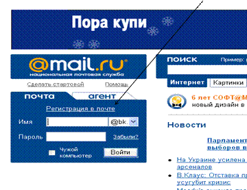 Цель: научиться настраивать почтовую программу и создавать почтовый ящик. 1. Для того чтобы завести себе почтовый ящик, нужно зарегистрироваться на сервере. Российские сервера: · http://www.mail.ru · http://www.newmail.ru · http://www.rambler.ru · http://www.yandex.ru · http://www.pisem.net Выбираем, например mail.ru, установив связь с Интернетом. Производим регистрацию, щелкнув «Регистрация в почте».