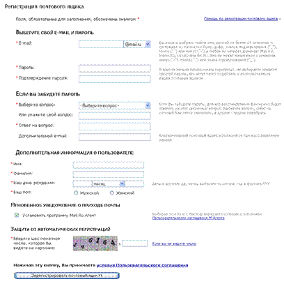 При регистрации вам нужно будет заполнить некоторые данные. Это необходимо для установки пароля на ваш почтовый ящик (Рис.5).
