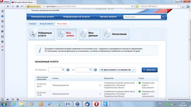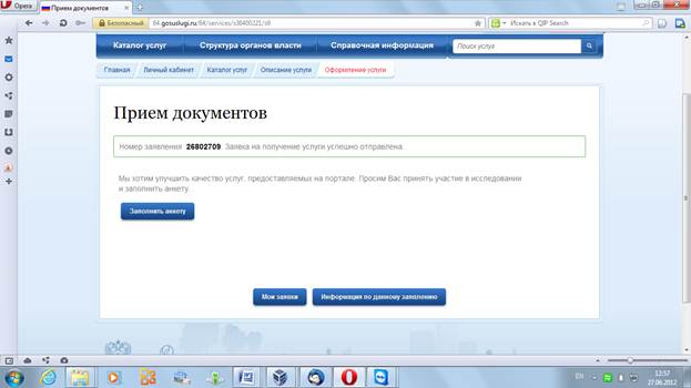 Заявление успешно подано. Нажимаем кнопку «Мои заявки»
