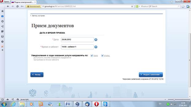 Выбираем удобную дату и время для подачи заявления. Нажимаем кнопку «Подать заявление».
