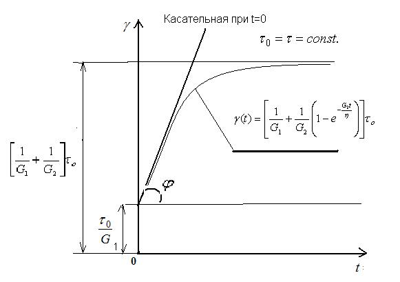 Рассмотрим методику проведения реометрических опытов для определения реологических констант вязкоупругой модели. Покажем, что эти константы можно определить на основе опытов на ползучесть. Ползучесть происходит при
