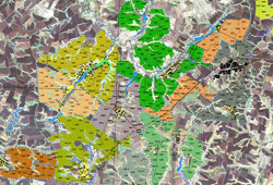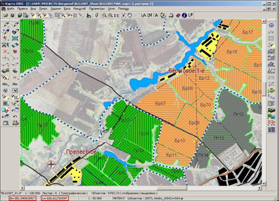 | Слои векторной схемы полей: - Системный; - Гидрография; - Дорожная сеть; - Населенные пункты; - Объекты-помехи; - Поля; - Названия и подписи; - Растительность; - Математическая основа; - Информация по любому нанесенному объекту.
