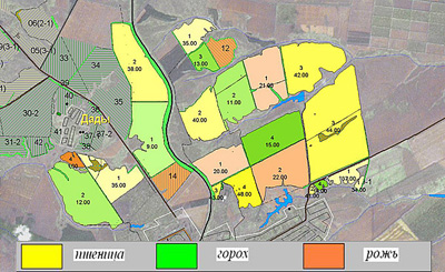 Пример тематической схемы посевов: пшеница + рожь + горох