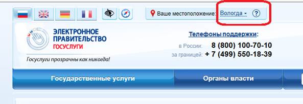 ПОРЯДОК ПОЛУЧЕНИЯ УСЛУГИ В ЭЛЕКТРОННОМ ВИДЕ - Для получения услуги необходимо зайти на Единый портал государственных услуг по адресу https://www.gosuslugi.ru/. - Если Вы уже зарегистрированы в системе, для оформления заявления на получение услуги необходимо авторизоваться, введя свой «логин» и «пароль». Если Вы не зарегистрированы в системе, то Вам необходимо пройти регистрацию. Родитель регистрируется на портале госуслуг и получает письмом по почте код для входа на данный сайт. - Далее необходимо выбрать Ваше местоположение, например Вологда или Вологодский район – т.к. образовательные организации привязаны к району проживания, а не к поселку, деревне и пр.