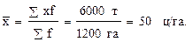 где х – варианты (значение признака); f – локальные частоты (частости). Определение средней арифметической взвешенной величины можно показать на примере расчёта средней урожайности льносоломки в 20 сельскохозяйственных организациях района (табл. 6.2.).