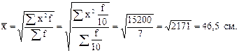 При условии подстановки значения к=2 в формулу (6.1.) получаем среднюю квадратическую величину. В ранжированном ряду средняя квадратическая величина рассчитывается по невзвешенной (простой) форме: